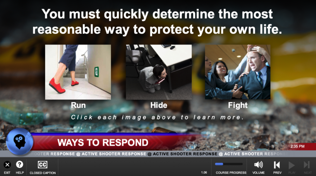 Active shooter training strengthens and reinforces an organization’s emergency action plan and can help reduce the risk of an incident occurring.